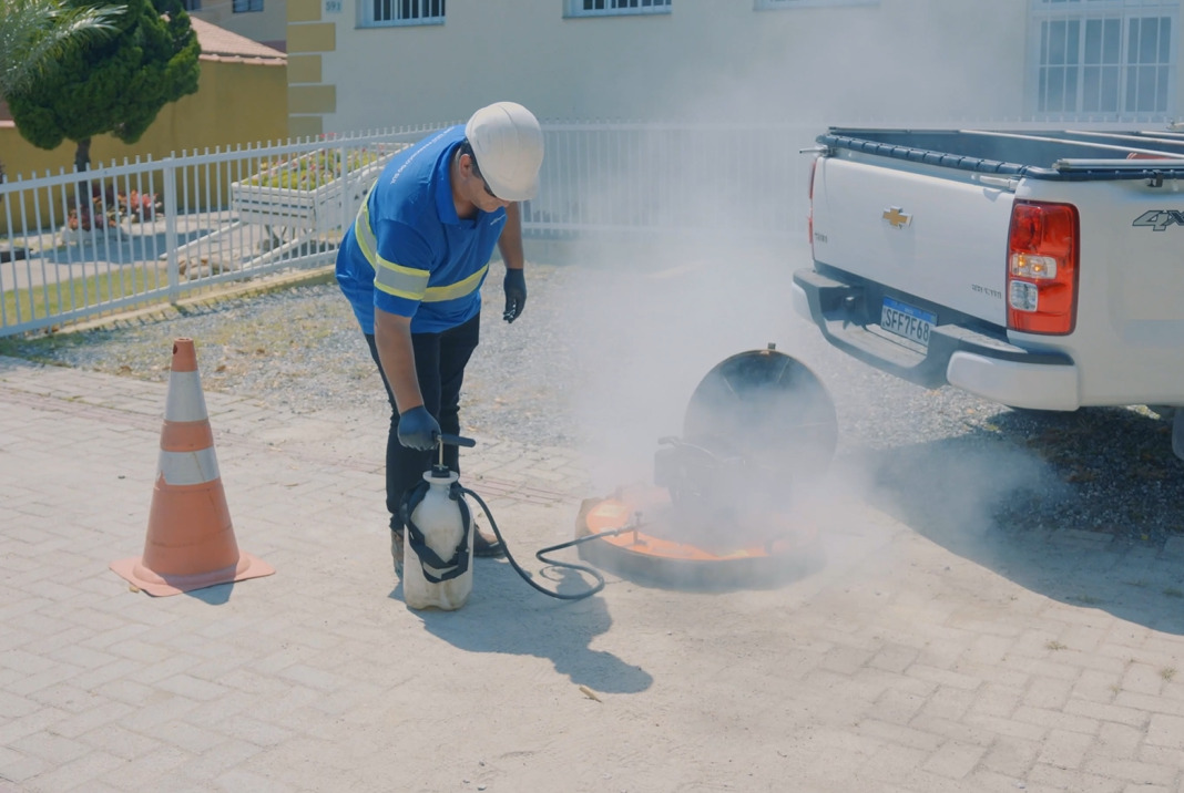 O procedimento consiste na utilização de um equipamento termonebulizador acoplado aos Poços de Visita (PVs), que injeta fumaça na rede de esgoto. “Quando a ligação está correta, a fumaça não aparece na superfície. Caso ela seja observada em galerias pluviais, ralos, calhas ou pavimentos, isso indica a existência de irregularidades”, explica o coordenador.